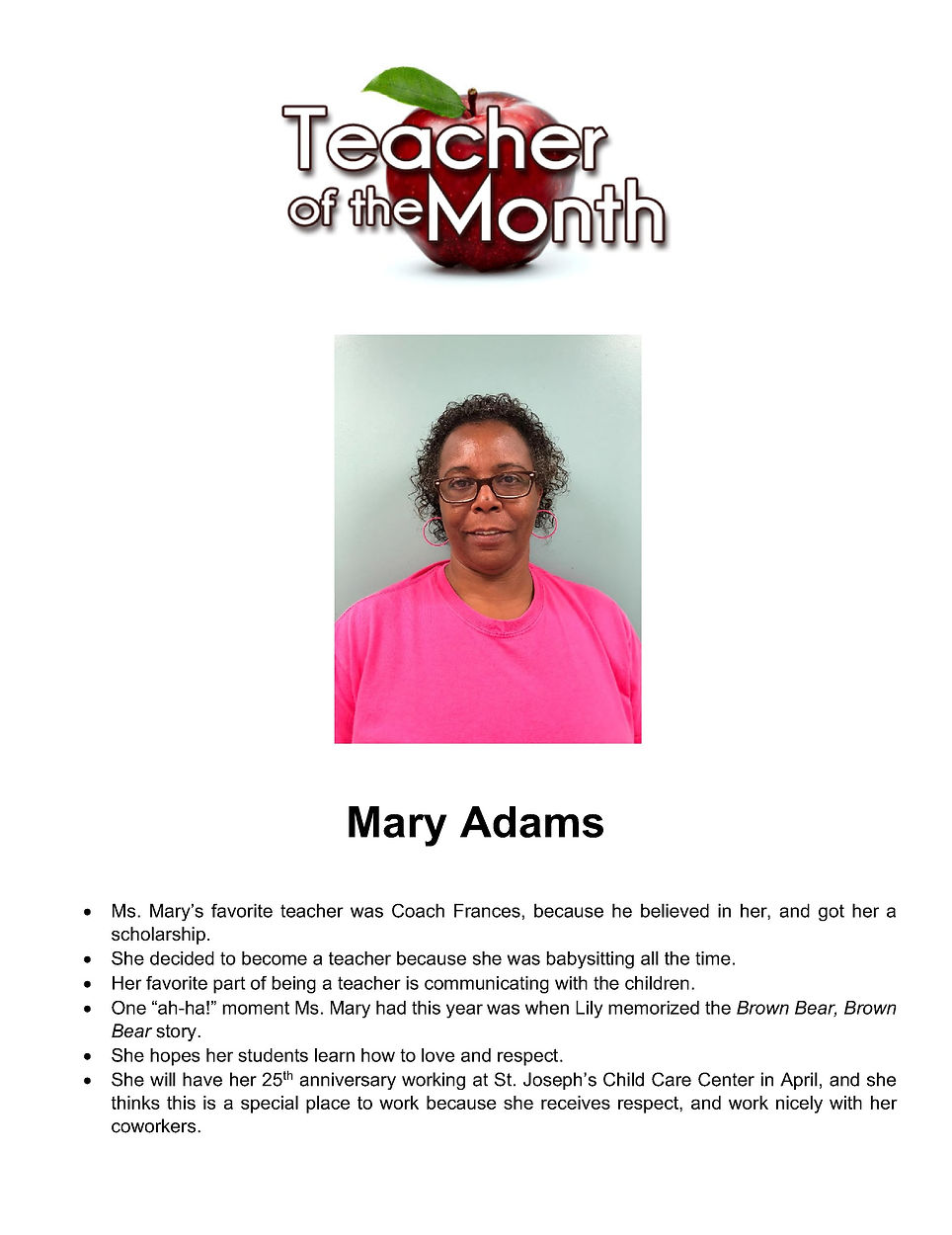 Teacher Of The Month​